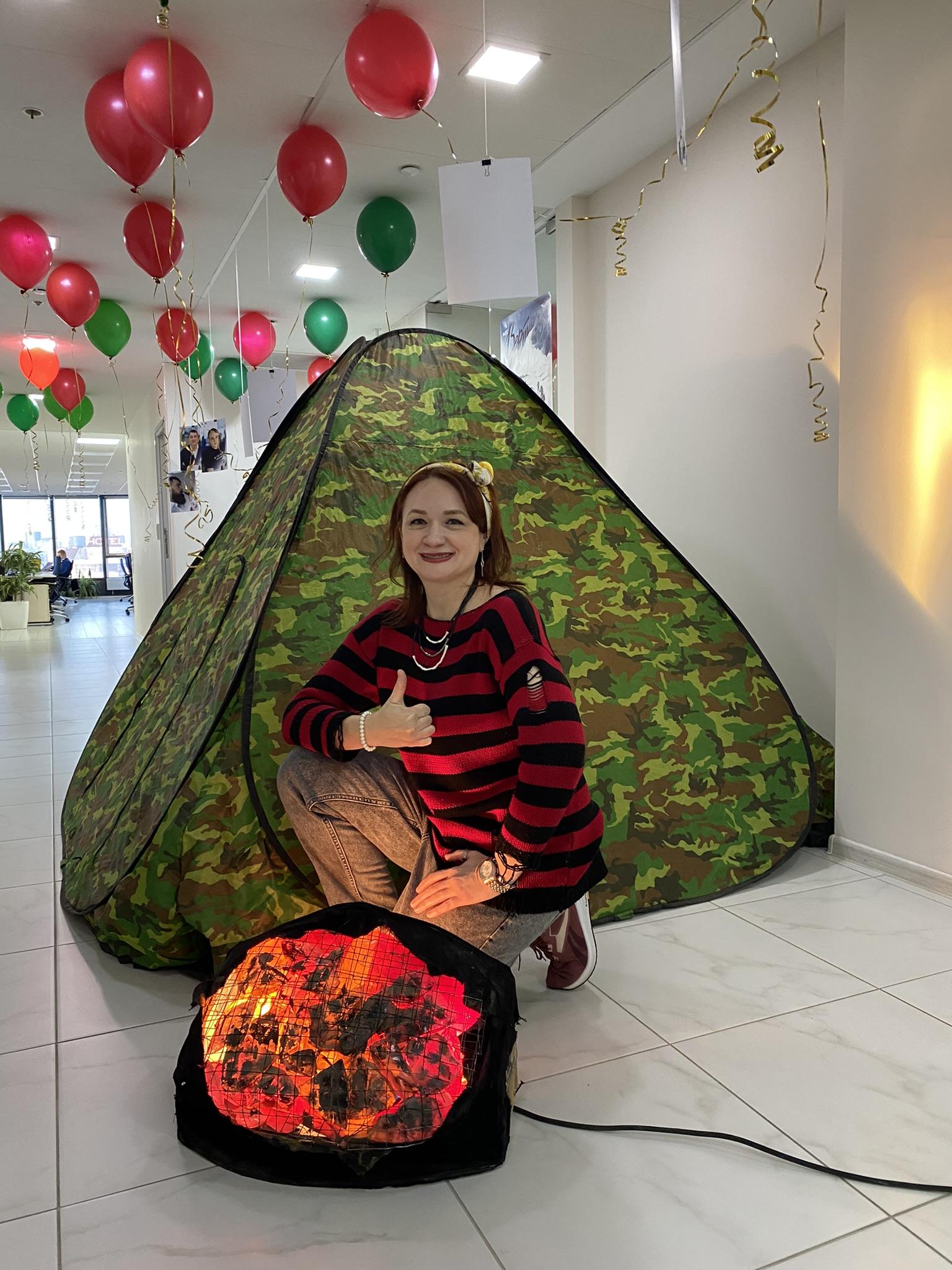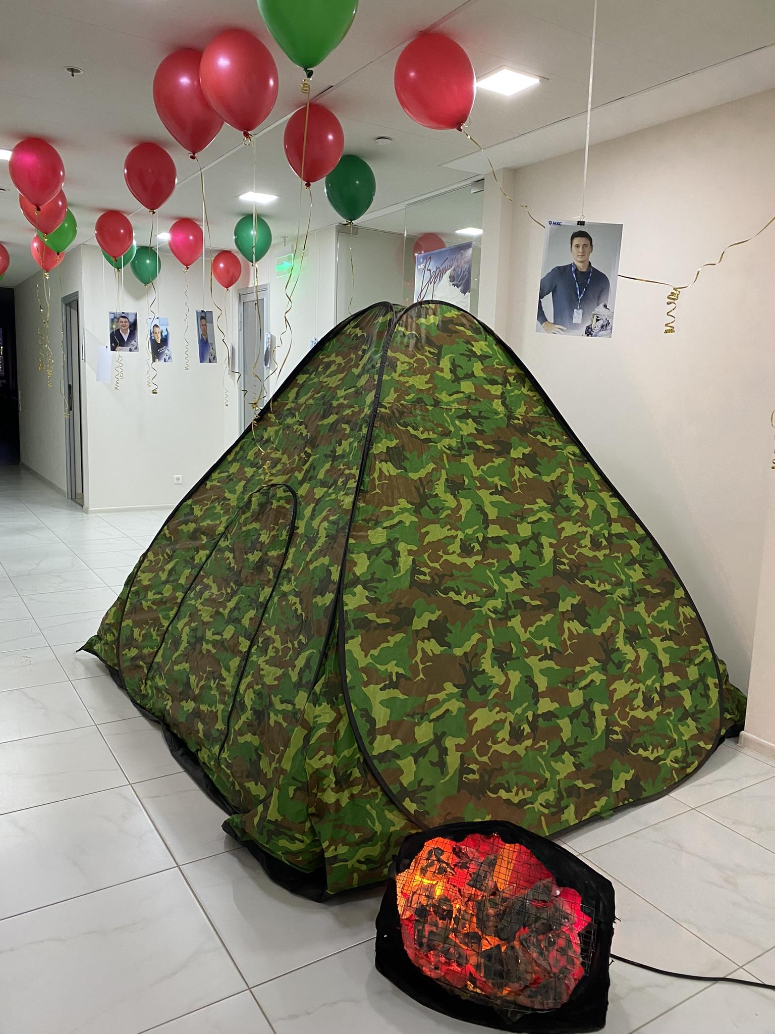 В преддверии 23 февраля  челябинский офис МКС превратился в походный туристический лагерь – с горами, лесами, настоящей палаткой, костром и, конечно же, с душевными песнями под гитару. А все сотрудники компании -  в веселых туристов-романтиков 70-х, для которых главные ценности – дружба, сплоченность, взаимовыручка.